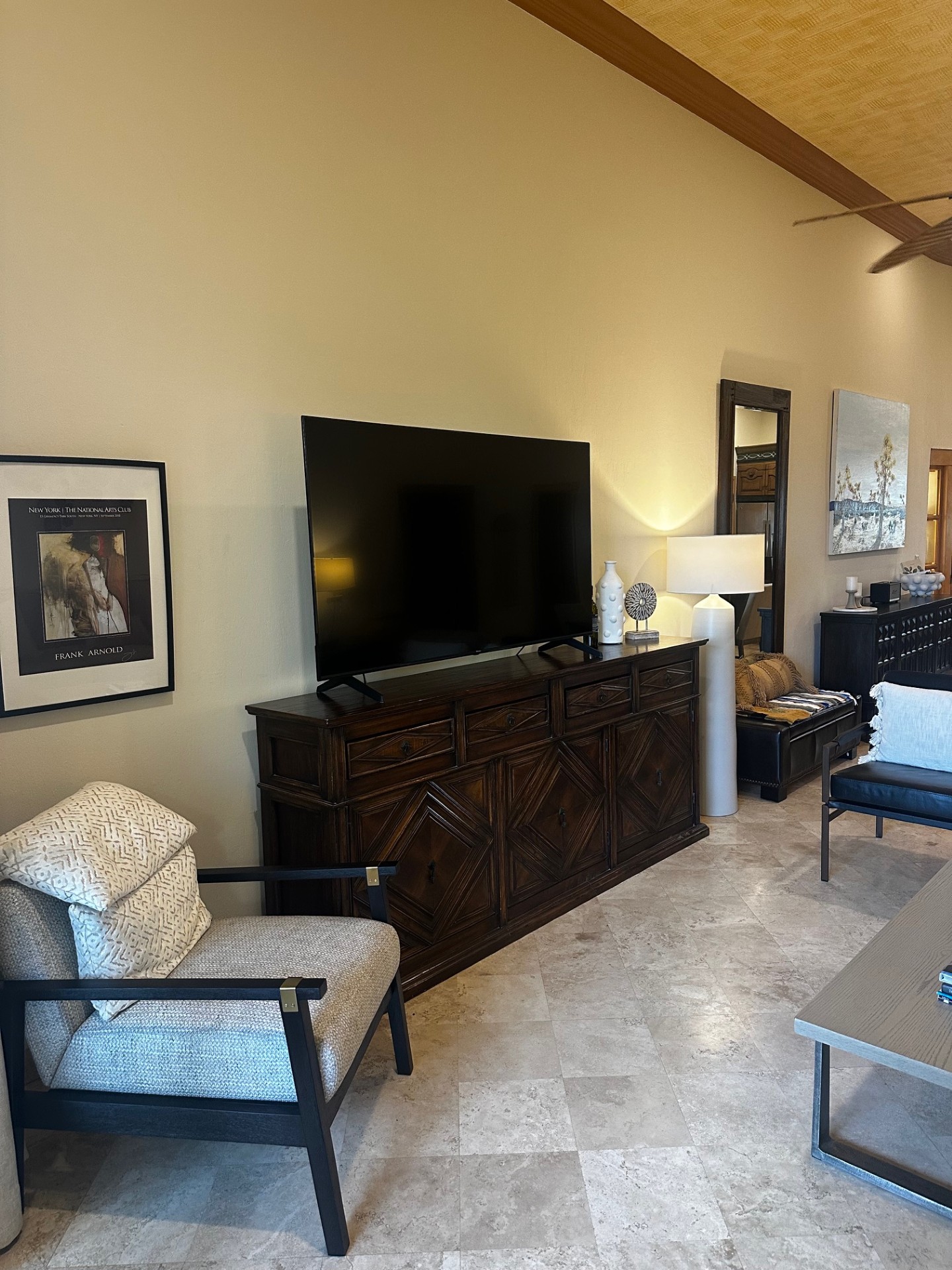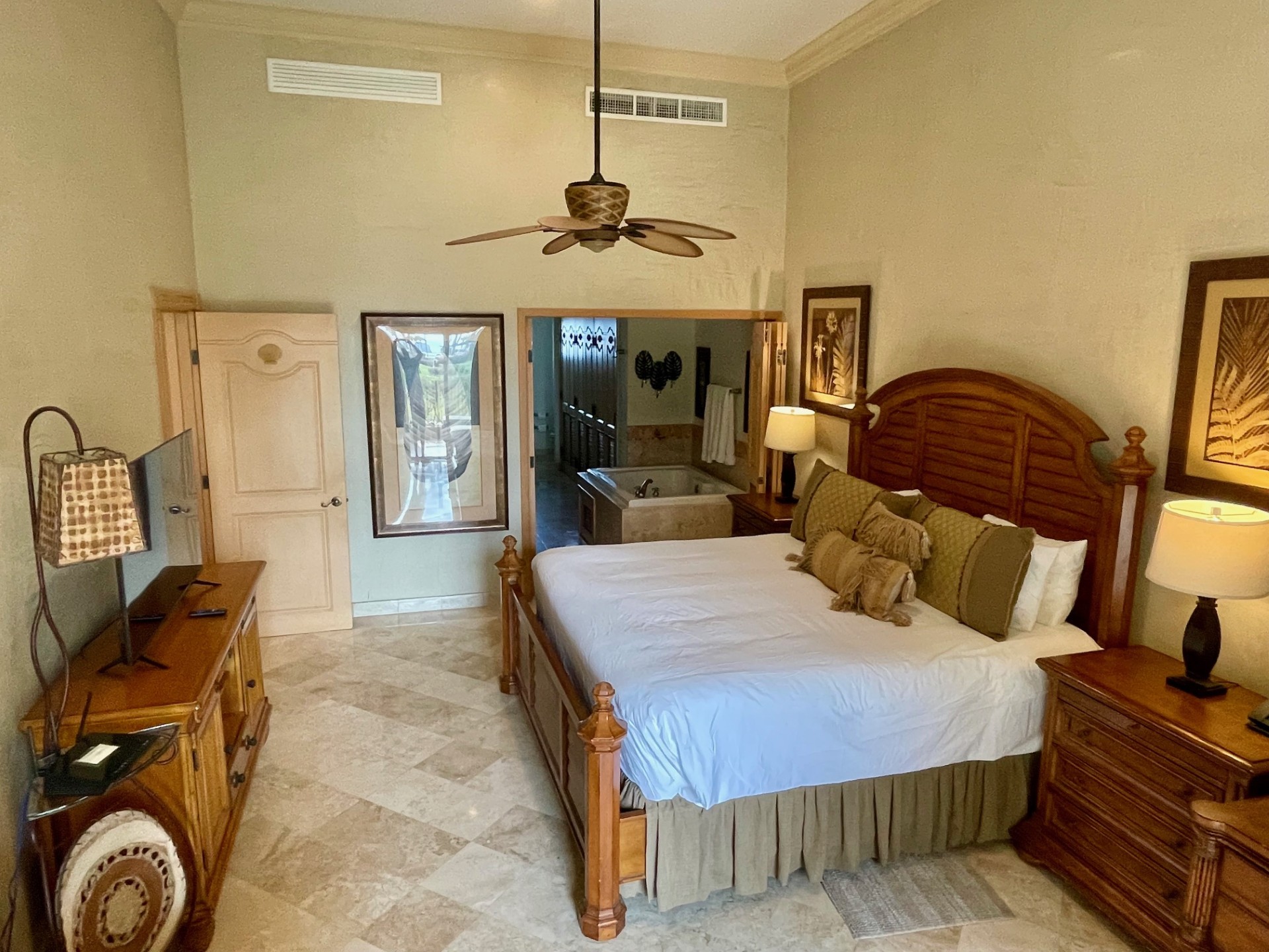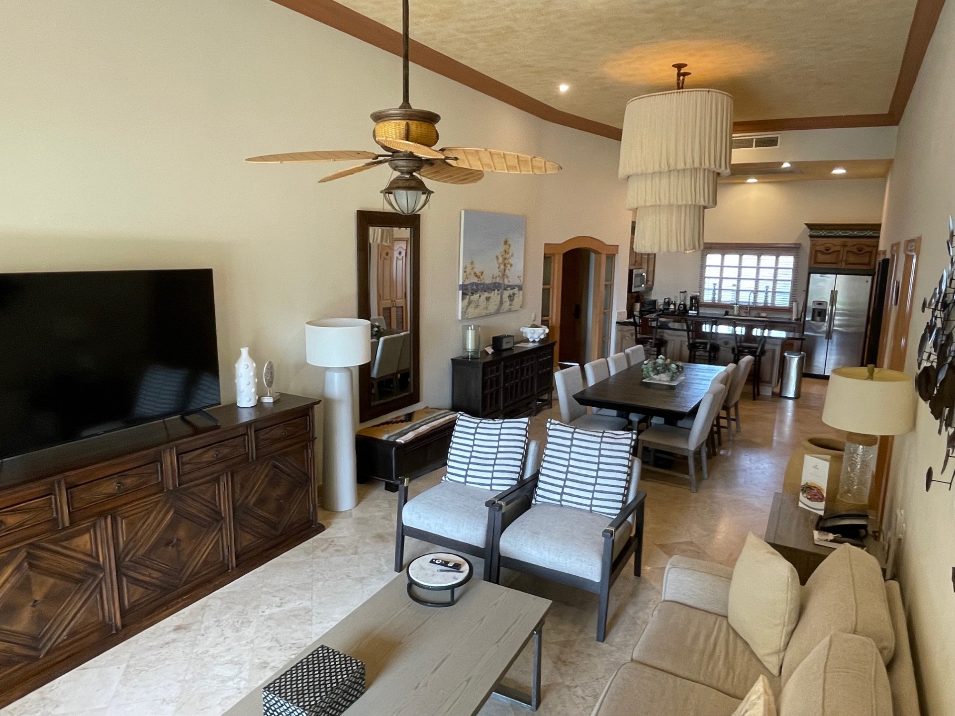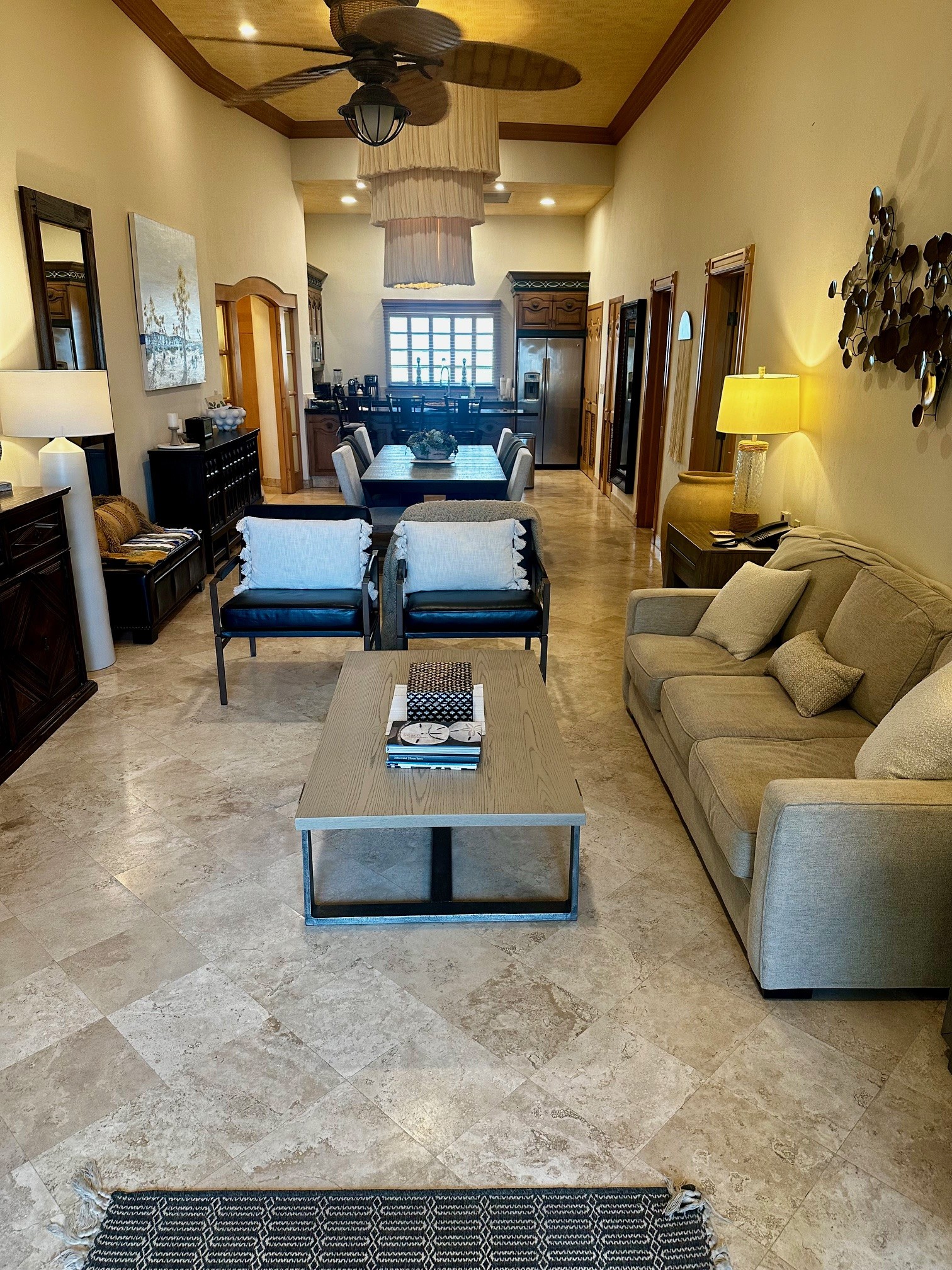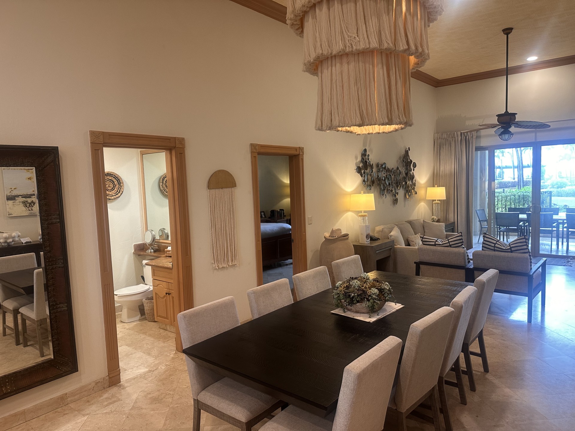 This spacious 2-bedroom, 3-bathroom villa features 2,200 sq ft of living space, including a fully equipped kitchen, spacious living and dining areas, and a private patio with ocean views.