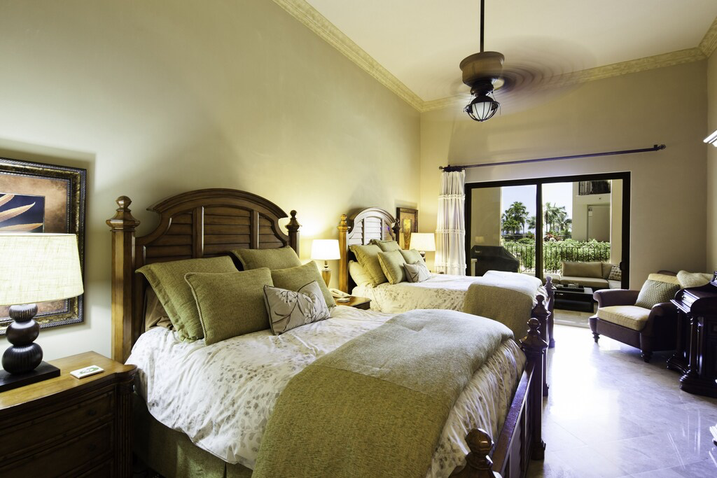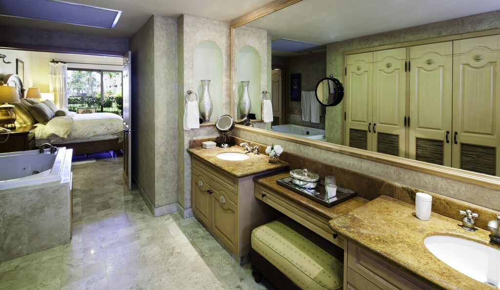 Amenities include daily housekeeping, high-speed Wi-Fi, cable TV, washer & dryer, central air conditioning, and in-room safe. Guests enjoy access to resort pools, spa, gym, and on-site restaurants.